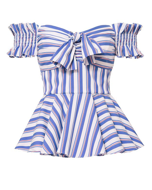 Caroline Constas – Artemis Striped Off Shoulder Bustier Top